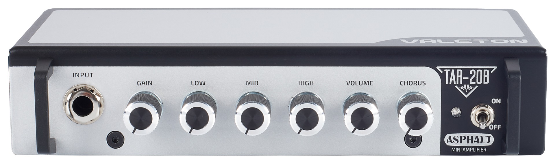 Baskytarový tranzistorový zesilovač TAR-20B je lehký kompaktní baskytarový tranzistorový zesilovač z řady Asphalt Series s výkonem 20 W a intuitivním uživatelským rozhraním. Pření panel nabízí ovladače hlasitosti, gainu, zabudovaného efektu chorus a třípásmový ekvalizér. Na opačné straně naleznete efektovou smyčku, Aux in vstup pro externí audio zdroje, sluchátkový výstup s cab simulací pro nerušené hraní/cvičení a 8/4 ohmový výstup do externího reproboxu. K napájení zesilovače použijte přibalený 18V adapté