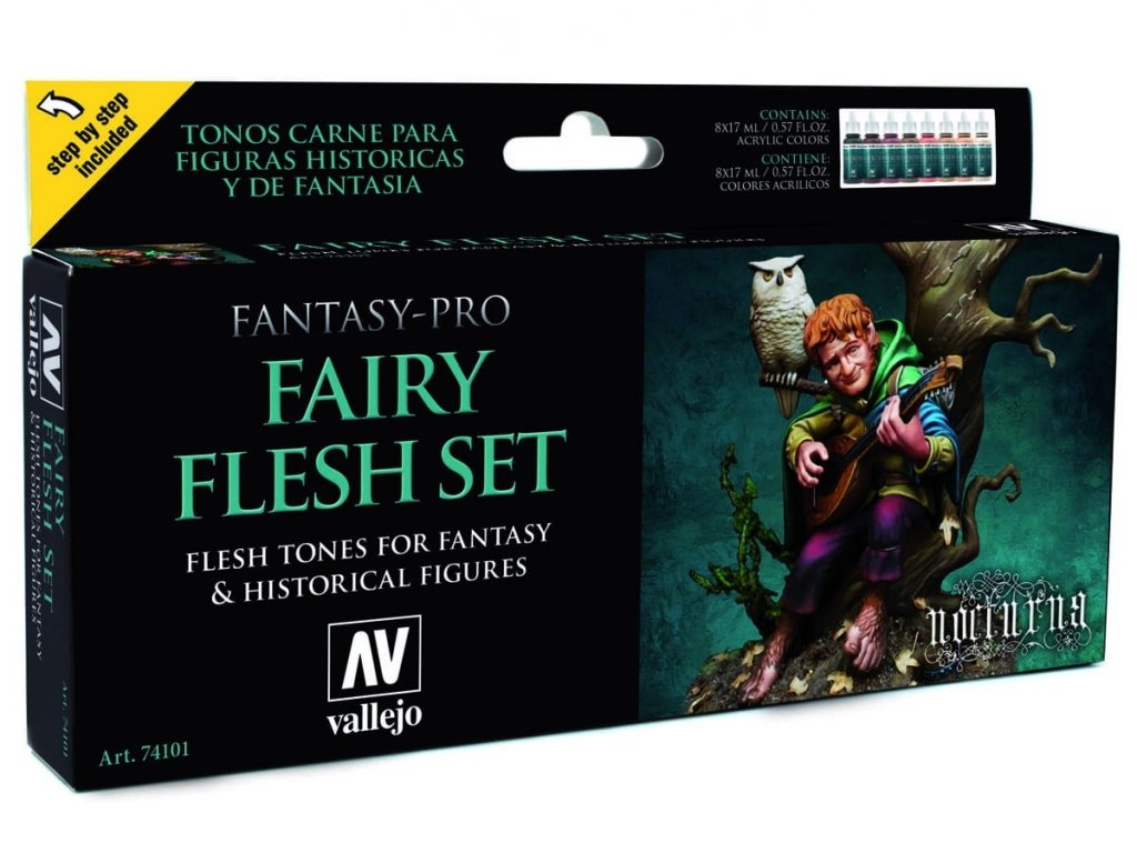Set barev s obrázkovým návodem "krok za krokem". Barvy s tělovými odstíny pro nejrůznější fantazy figurky či historické (případně válečné) postavičky. ENG Set for skin tones with intense colors for small scale fantasy figures, or lowsaturation natural skin colors of historical figures or figures in war scenarios. The set includes step by step by Nocturna Models. Content:8 x 17 ml./0.57 fl.oz. Fantasy-Pro colors 74.001 Nocturna Shadow74.002 Burned Flesh74.003 Reddish Flesh74.004 Base Flesh74.005 Medium Flesh74.006 Natural Flesh74.007 Fairy Flesh74.008 Highlight Skin