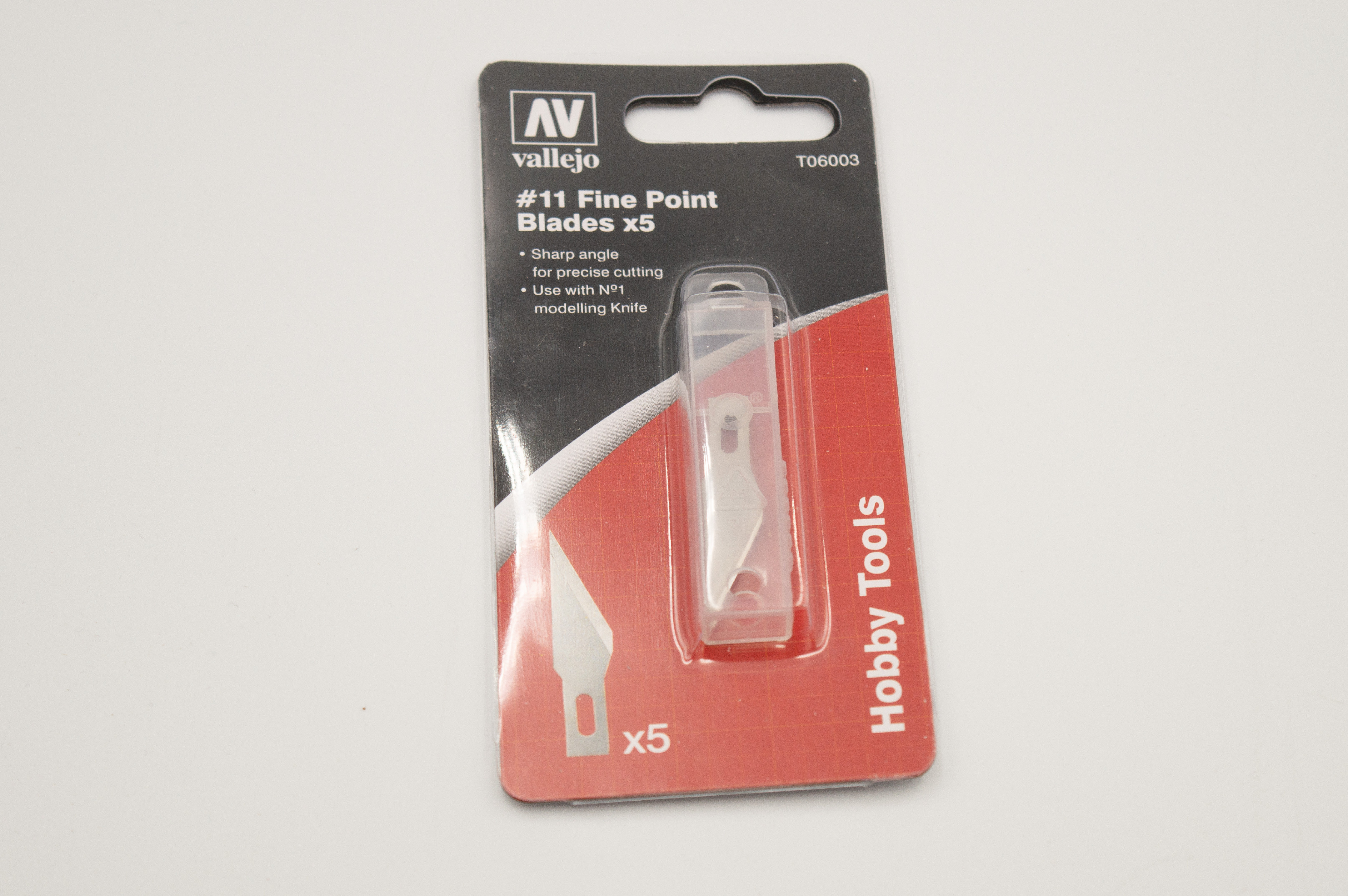 5x náhradní čepel pro skalpel T06006 a T06007 Vallejo T06003 je sada pěti náhradních čepelí typu #11 s jemným hrotem, určených k preciznímu řezání a dalším jemným modelářským pracím. Tyto čepele jsou určeny pro modelářské nože č. 1, což je standardní typ pro detailní práci, a díky jemnému hrotu jsou ideální pro úkoly vyžadující vysokou přesnost. Hlavní vlastnosti a výhody: Univerzální použití: Čepele jsou vhodné pro práci s různými materiály, jako je papír, karton, plast, balsa dřevo a fólie, což umožňuje široké spektrum modelářských a kreativních úprav. Přesnost: Ostrý úhel čepele s jemným hrotem je ideální pro detailní práce, včetně: Vyřezávání jemných detailů Rytí do povrchu materiálu Propichování a vytváření přesných otvorů Rýhování a škrábání pro jemné úpravy Ořezávání drobných částí s minimálním poškozením okolního materiálu Odolnost: Vyrobeny z kvalitní oceli, která zajišťuje dlouhou životnost čepele a ostrý řez po delší dobu. Kompatibilita: Čepele jsou standardního tvaru a velikosti, což umožňuje jejich použití nejen s noži značky Vallejo, ale také s dalšími modelářskými noži, které podporují čepele typu #11. Vallejo T06003 je ideální volbou pro modeláře, 3d tiskaře, umělce a řemeslníky, kteří potřebují precizní nástroj pro detailní práci s různými materiály.