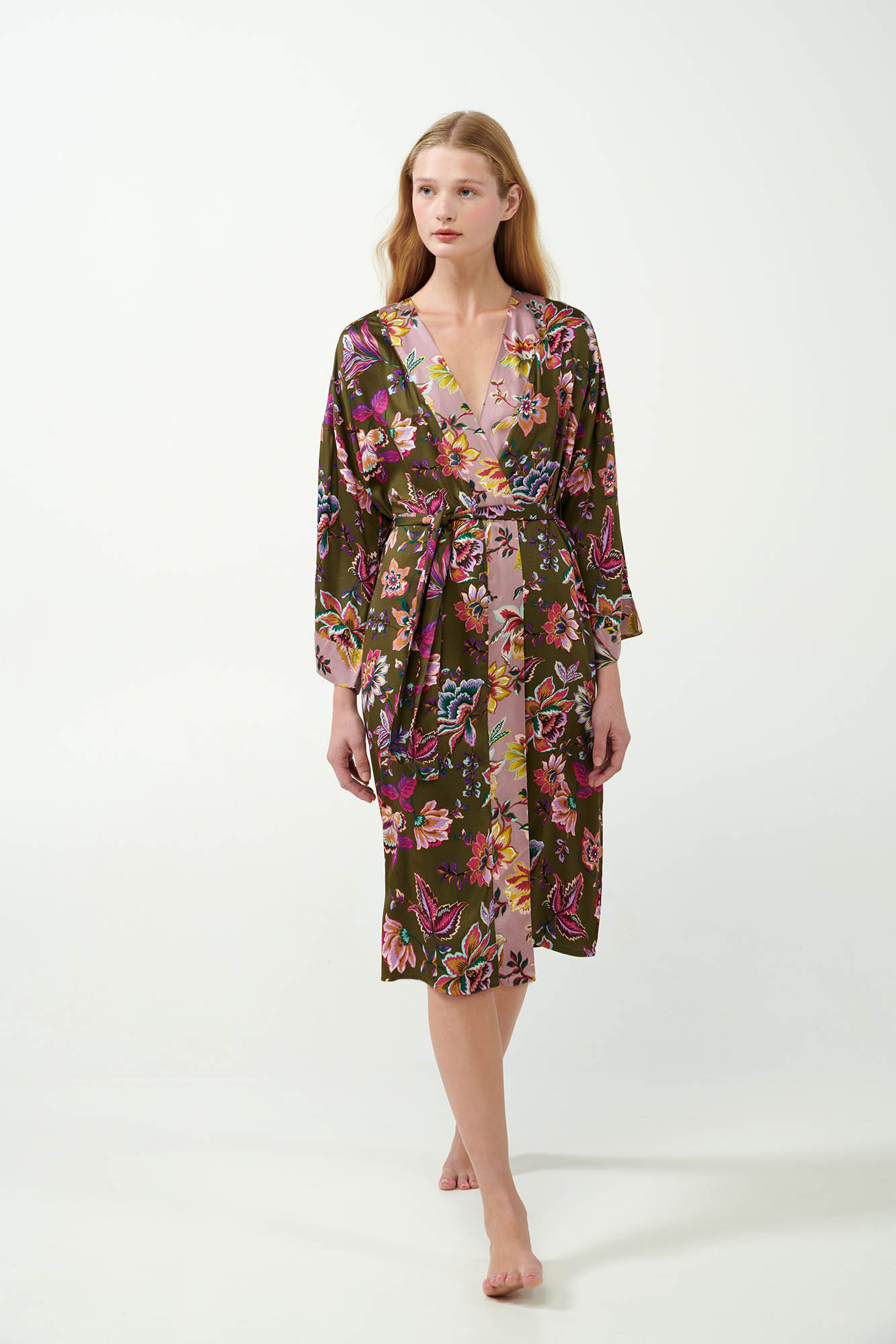 100% Viskóza SaténDélka: 110 cm.Modelka: výška 175 cm, velikost: Small.Zabalte se do luxusu s tímto krásným dámským županem se složitým jakobínským potiskem. Je navržen s klasickým překříženým předním dílem a odpovídajícím páskem a nabízí střih, který lichotí každé postavě. Tento župan je vyroben z viskózového saténu a má hladkou, hedvábnou strukturu, která je na pokožce příjemná. Tento župan, který je ideální pro dodání nádechu elegance vašemu lenošení, kombinuje nadčasový design s dokonalým pohodlím a je nezbytným doplňkem vaší sbírky nočního prádla.
