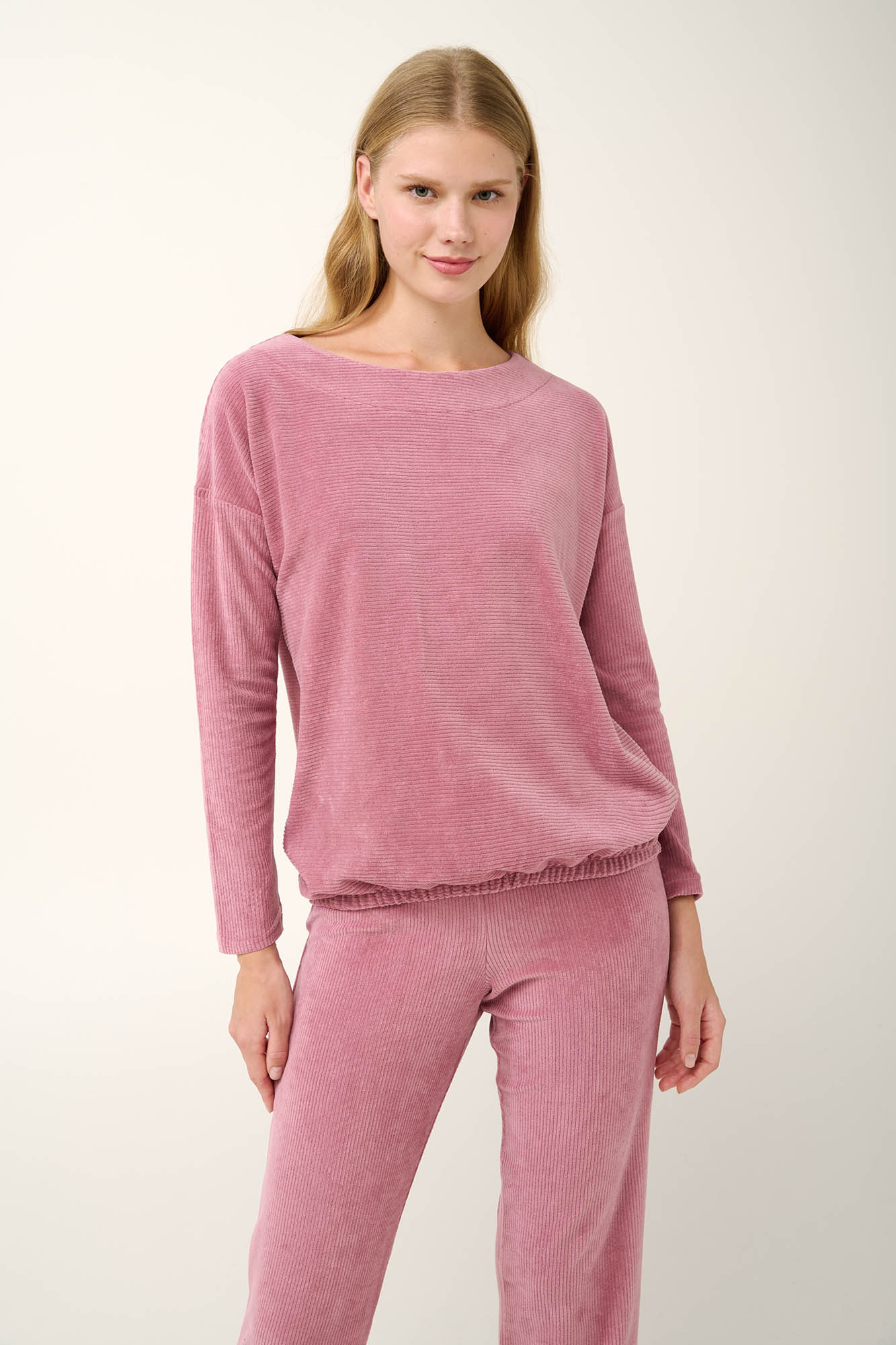 80% bavlna + 20% polyester. Délka vršku: 65 cm. Modelka má na sobě: Výška modelky: 175 cm.Dopřejte si příjemné pohodlí s touto zimní lounge soupravou v jemné růžové barvě. Souprava je vyrobena ze sametového manšestru bohatého na bavlnu, má hladký horní díl s širokým kulatým výstřihem a elastický pas pro lichotivý, uvolněný střih. Souprava je ideální na domácí lenošení i příležitostné vycházky, její měkká struktura a nadčasový design v sobě bez problémů spojují teplo a styl. Tato souprava, která je všestranným doplňkem vašeho zimního šatníku, nabízí pohodlí i eleganci pro tuto sezónu. .