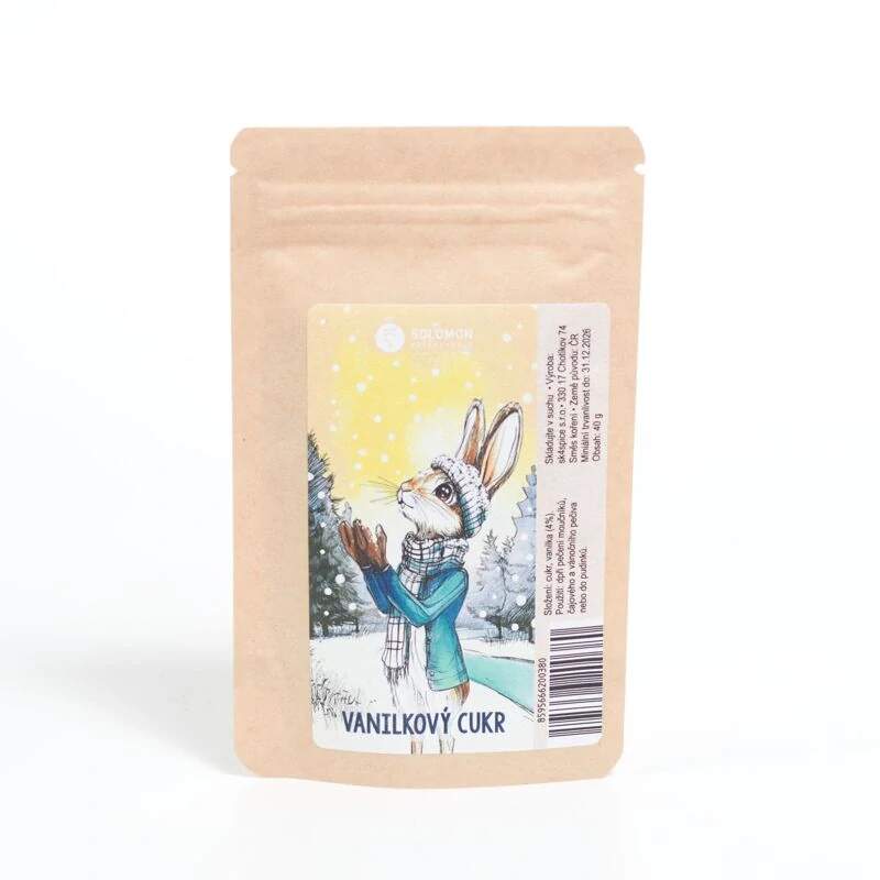 Vanilkový cukr v krásném balení s mývalem Cukr je připravený z čistého cukru a mleté vanilky. Na příravu 1 kg vanilkového cukru je použitá mletá vanilka, připravená z přibližně 25 vanilkových lusků z Madagaskaru. Používá se při pečení moučníků, čajového a vánočního pečiva nebo do pudinků. Lžičkou vanilkového cukru si můžeme dochutit i čaj. Vanilkový cukr připravený z pravé vanilky je zcela jiný produkt, než cukr vanilinový. Vanilin je syntetické vanilkové aroma vyráběné chemickou cestou. Rozdíl mezi vanilkou a vanilinem je asi takový, jako aroma jahodových žvýkaček a aroma čerstvých jahod. Vanilka je ovšem posledních pár let VELMI drahá surovina a proto je vysoká cena i vanilkového cukru. Složení: cukr, vanilka (4%). Balení 40g: Sáček se zipem umožňující opakované vzduchotěsné uzavření. Je vyroben z třívrstvého materiálu podobné konstrukce jako nápojové kartony a zaručuje zachování kvality po celou dobu minimální trvanlivosti.
