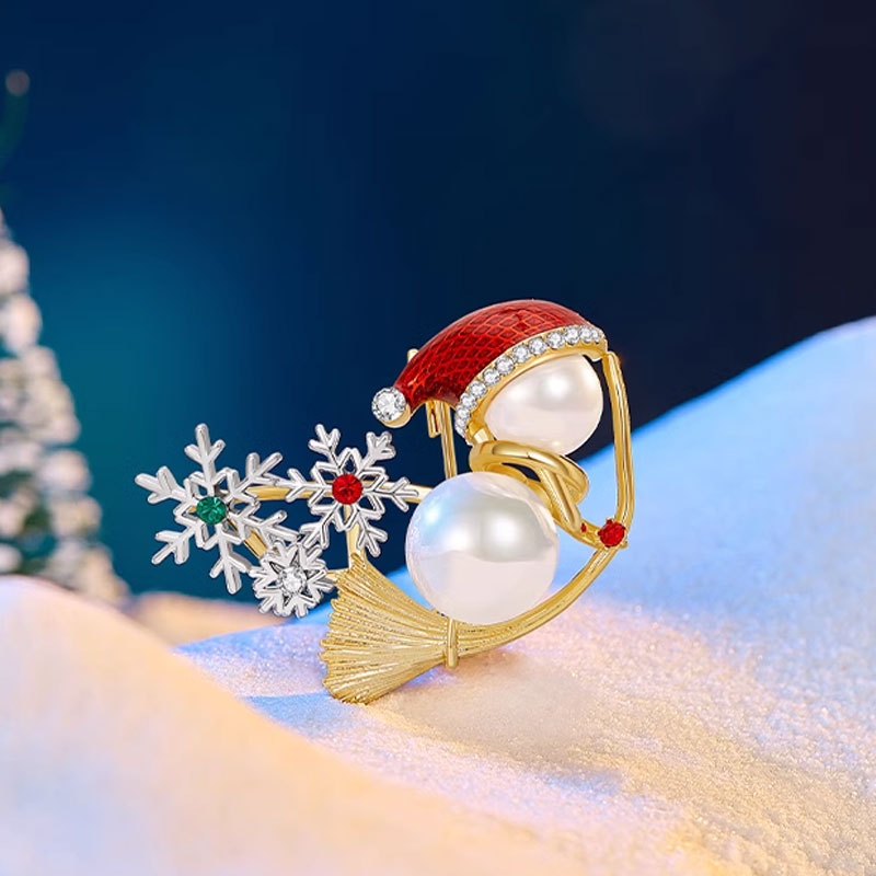 Oživte svůj zimní outfit touto roztomilou vánoční broží ve tvaru sněhuláka. Elegantní kombinace lesklých perel, zlatých detailů a třpytivých sněhových vloček vytváří harmonický design, který zaujme na první pohled. Sněhulákova červená čepice, ozdobená drobnými kamínky, dodává broži hravý a slavnostní nádech. Tato brož je ideálním doplňkem pro zimní měsíce, ať už ji nosíte na kabátu, šále nebo svetru. Skvěle se hodí na vánoční večírky, rodinné oslavy nebo každodenní nošení, kdy chcete do svého stylu přidat trochu kouzla Vánoc. Je lehká, snadno se připíná a díky preciznímu zpracování působí luxusním dojmem. Brož sněhulák je také perfektním dárkem pro vaše blízké. Potěšte maminku, sestru nebo kolegyni šperkem, který symbolizuje zimní radost a pohodu. Tento originální doplněk jim bude připomínat krásné okamžiky vánoční sezóny.