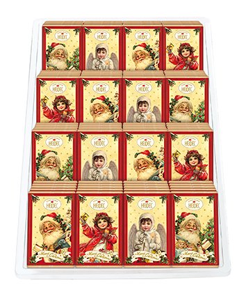 Miničokolády z mléčné čokolády s vánočním motivem. Hmotnost jedné čokoládky 10g. V případě zájmu o celé balení, zadejte prosím 108ks Mléčná čokoláda (minimální podíl kakaové sušiny 37 % mléčné sušiny: 20 %), Složení: cukr, sušené plnotučné mléko, kakaové máslo, kakaová hmota, emulgátor: sójový lecitin. Může obsahovat stopy skořápkových plodů. Uchovejte v suchu, chraňte před teplem Kvalitní čokoláda od firmy Heidel Různé motivy, zasíláme náhodně