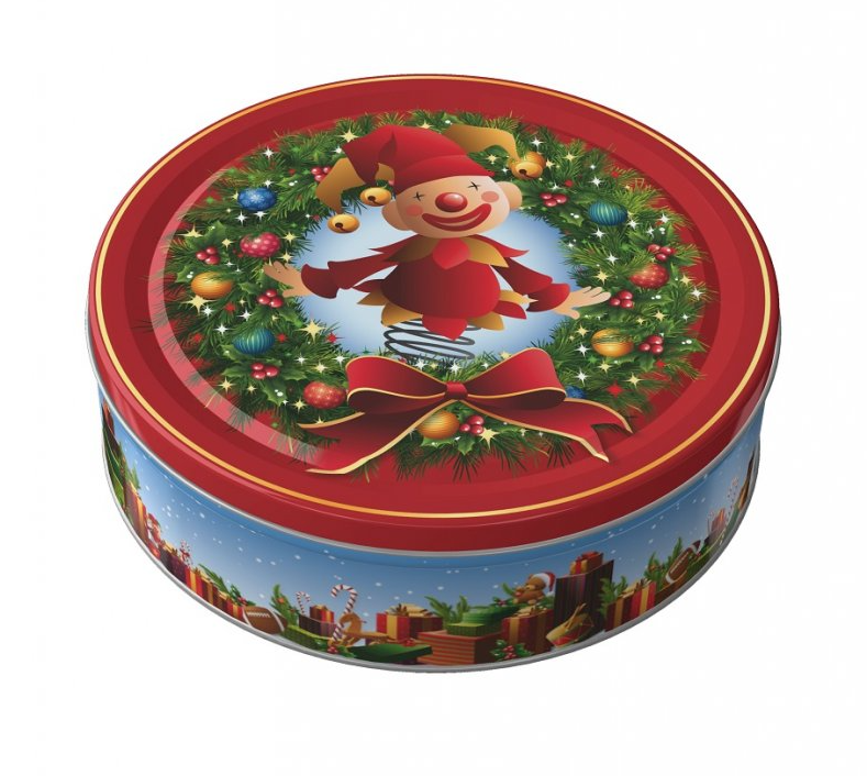 Máslové sušenky v plechové dóze s vánočním motivem Složení: pšeničná mouka, cukr, palmový tuk, máslo 7%, perlový cukr, kokosová mouka, sušená syrovátka z mléka, sůl, kypřící látka (hydrogenuhličitan amonný), sirup z invertního cukru (sacharóza, voda, glukóza, fruktóza), přírodní aroma, kypřící látka (hydrogenuhličitan sodný) Informace pro alergiky: Výrobek může obsahovat stopy jiných ořechů a vajec. Vyrobeno v Dánsku.