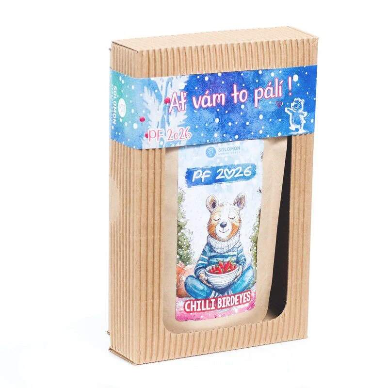 Dárková sada koření s chilli Ať vám to pálí! Dárková sada o rozměrech 17 x 11 x 4 cm je krásným dárkem. Krabička s originálním designem obsahuje sáček Chilli Kashmirri Chilli papričky Birdeyes a Chilli vločky. Dárková sada pro milovníky ostrého jídla, endorfinů a pikantních zážitků! Složení kazety: Chilli Kashmiri 25g - Mleté chilli papričky výrazné barvy s mírnou pálivostí 1500 - 2500 SHU. Toto sytě červené koření pochází z oblasti Kašmíru a je ceněné nejen pro svou krásnou barvu, ale i pro svou jemnou pálivost, která dodává pokrmům hloubku chuti bez extrémní pálivosti. Chilli papričky Birdeyes 12g - malé papričky pěstované v Africe o rozměru 1-4 cm. Jsou také známé pod jménem piri piri. Velice ostré papričky používané v celku na nakládání zeleniny, marinování masa nebo na aromatizaci octů a olejů. Pálivost: 80.000 - 110.000 SHU. Chilli vločky 20g - středně pálivé chilli papričky drcené na a prosívané na rozměr 3-5 mm. Chilli obsahuje pouze minimální obsah semínek. Pálivost: 20.000 – 50.000 SHU