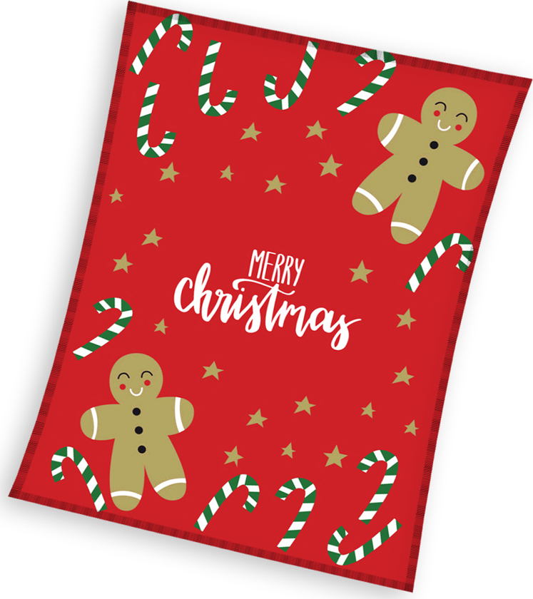 Vánoční deka s motivem Pana Perníčka Vánoční deka Perníčci, je vyrobena z hřejivého fleecu, 100% polyesteru, s gramáží 180g/m² Rozměry polyesterové deky jsou 130x170 cmNa dece máme dva rozkošné perníčky, a spoustu cukrových lízátekČervenou deku doplňují krásné, zlatavé hvězdičkyUprostřed deky je bílý nápis "Merry christmas"Deka najde perfektní využíti jako přehoz na válendy, gauče a posteleNemusíte se jí bát využít také jako herní deku, na níž si mohou Vaše děti hrátPro svou barevnou kombinaci deku lehce zkombinujete i s dalšími vánočními vzory ve Vašem domově Údržba deky je velice snadná, držte se při praní symbolů, které jsou uvedeny na obaleNepoužívejte při praní prací prostředky s obsahem bělidel a rozjasňujících substancíOdstřeďujte při nižších otáčkách, aby nedošlo k polámání a poškození vlákenAvivážní prostředky nedoporučujeme používat, mohu slepit vlákna a tím snížit savost Odstíny barev obrázků se mohou lehce lišit v závislosti na nastavení vašeho monitoru