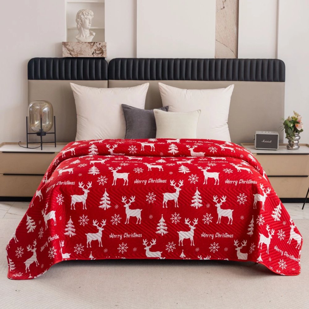 Vytvořte si doma kouzelnou sváteční atmosféru s prošívaným vánočním přehozem. Tento elegantní přehoz je vyroben z měkkého, příjemného na dotek mikrovlákna, které zaručuje pohodlí a lehkost po celou zimu. Vánoční motiv okamžitě evokuje hřejivý pocit Vánoc. Deka je ideální jako vánoční dekorace na vaši postel, pohovku nebo gauč - dodá vašemu interiéru stylový zimní nádech. Prošívaný vánoční přehoz je ideální volbou, pokud chcete do své ložnice nebo obývacího pokoje vnést útulnost, teplo a sváteční kouzlo. Ideální dárek pod stromeček pro všechny, kdo milují Vánoce! Specifikace: Barva: červeno-bílá Velikost: dle vašeho výběru - v nabídce více velikostí Materiál: 100% polyester Rozměrová tolerance +/- 5 % Cena zahrnuje: přehoz bez povlaků na polštáře Pokyny k praní naleznete na štítku Barvy se mohou mírně lišit v závislosti na nastavení monitoru