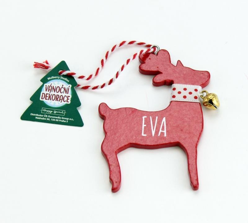 Dřevěné dekorace se jmény či texty lze použít nejen jako ozdobičku na stromeček, ale i jako stylovou jmenovku na dárek. S rolničkou a okrasnou stužkou. Sobíci pro ženy, bílí medvědi pro muže.