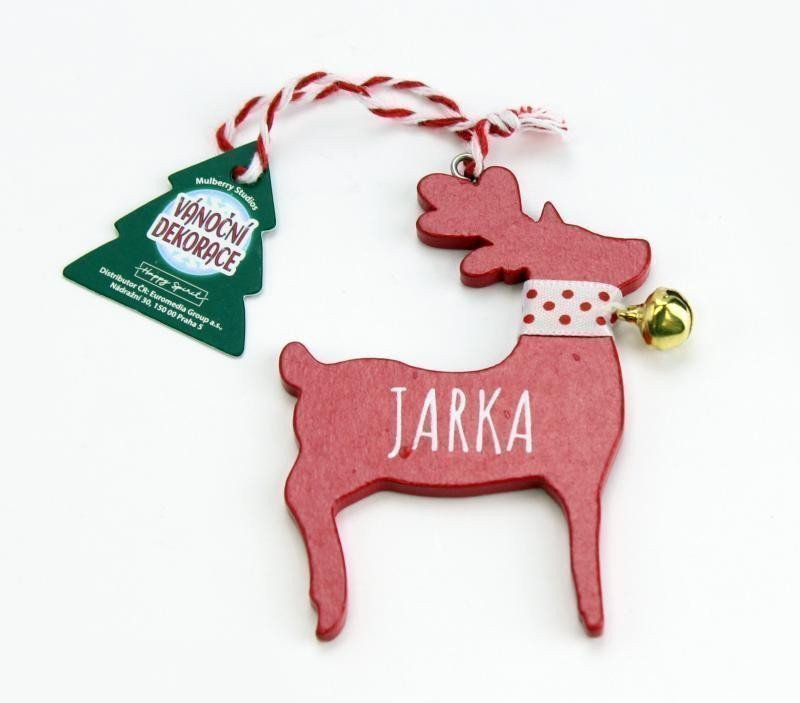 Dřevěné dekorace se jmény či texty lze použít nejen jako ozdobičku na stromeček, ale i jako stylovou jmenovku na dárek. S rolničkou a okrasnou stužkou. Sobíci pro ženy, bílí medvědi pro muže.