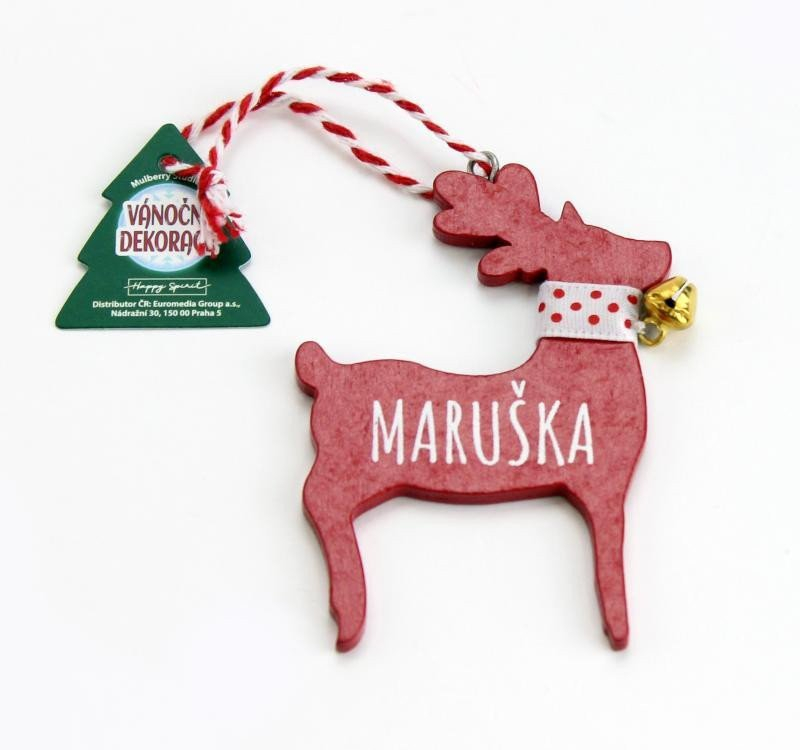 Dřevěné dekorace se jmény či texty lze použít nejen jako ozdobičku na stromeček, ale i jako stylovou jmenovku na dárek. S rolničkou a okrasnou stužkou. Sobíci pro ženy, bílí medvědi pro muže.