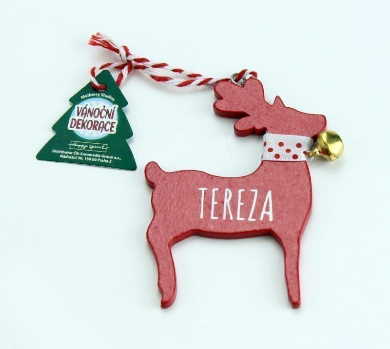 Dřevěné dekorace se jmény či texty lze použít nejen jako ozdobičku na stromeček, ale i jako stylovou jmenovku na dárek. S rolničkou a okrasnou stužkou. Sobíci pro ženy, bílí medvědi pro muže.