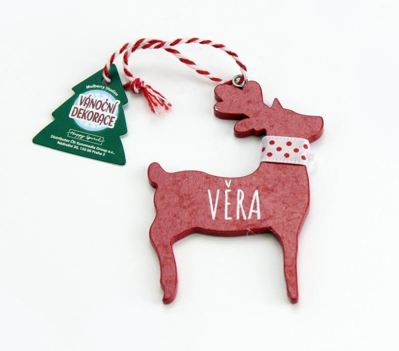 Dřevěné dekorace se jmény či texty lze použít nejen jako ozdobičku na stromeček, ale i jako stylovou jmenovku na dárek. S rolničkou a okrasnou stužkou. Sobíci pro ženy, bílí medvědi pro muže.