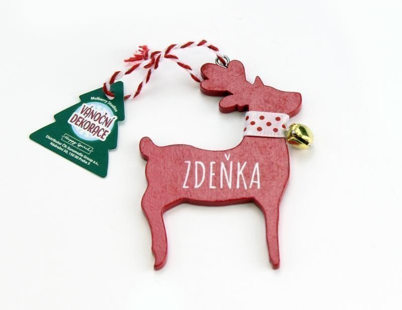 Dřevěné dekorace se jmény či texty lze použít nejen jako ozdobičku na stromeček, ale i jako stylovou jmenovku na dárek. S rolničkou a okrasnou stužkou. Sobíci pro ženy, bílí medvědi pro muže.