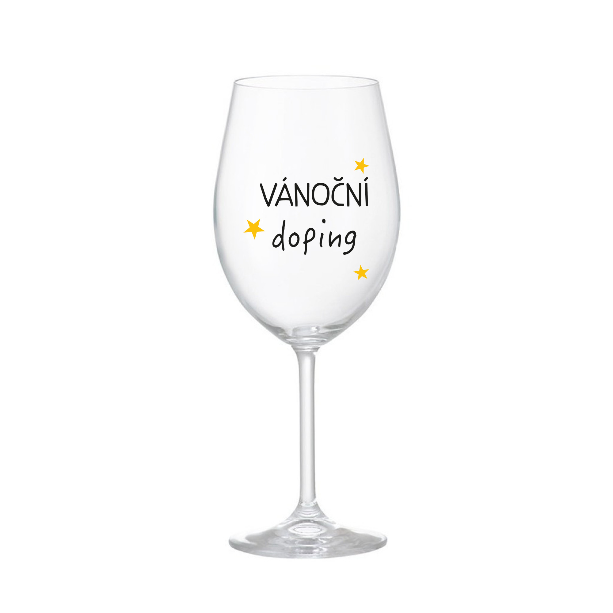 Vinná čirá sklenice s originálním motivem VÁNOČNÍ DOPING je krásným a osobitým dárkem, které ale využijete i Vy sami třeba ve chvílích, kdy si budete chtít zpříjemnit náročný den. Tyto originální vinné sklenice jsou totiž nejen pro výjimečné události, ale i pro běžné večery, které si chcete zpříjemnit sklenkou dobrého vína. Jistě proto potěší každého milovníka vína, i toho, kdo si umí svůj život vychutnat plnými doušky. Materiál sklo. Vyrobené s láskou v ČR