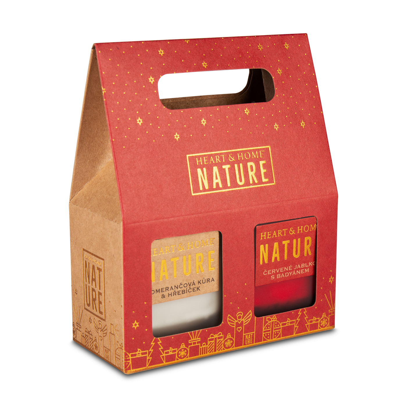 Sada 2 svíček Heart and Home Nature ze sójového vosku s vánočními vůněmi v dárkovém balení. Hmotnost: 2 × 80 g Doba hoření: každá svíčka až 15 hodin