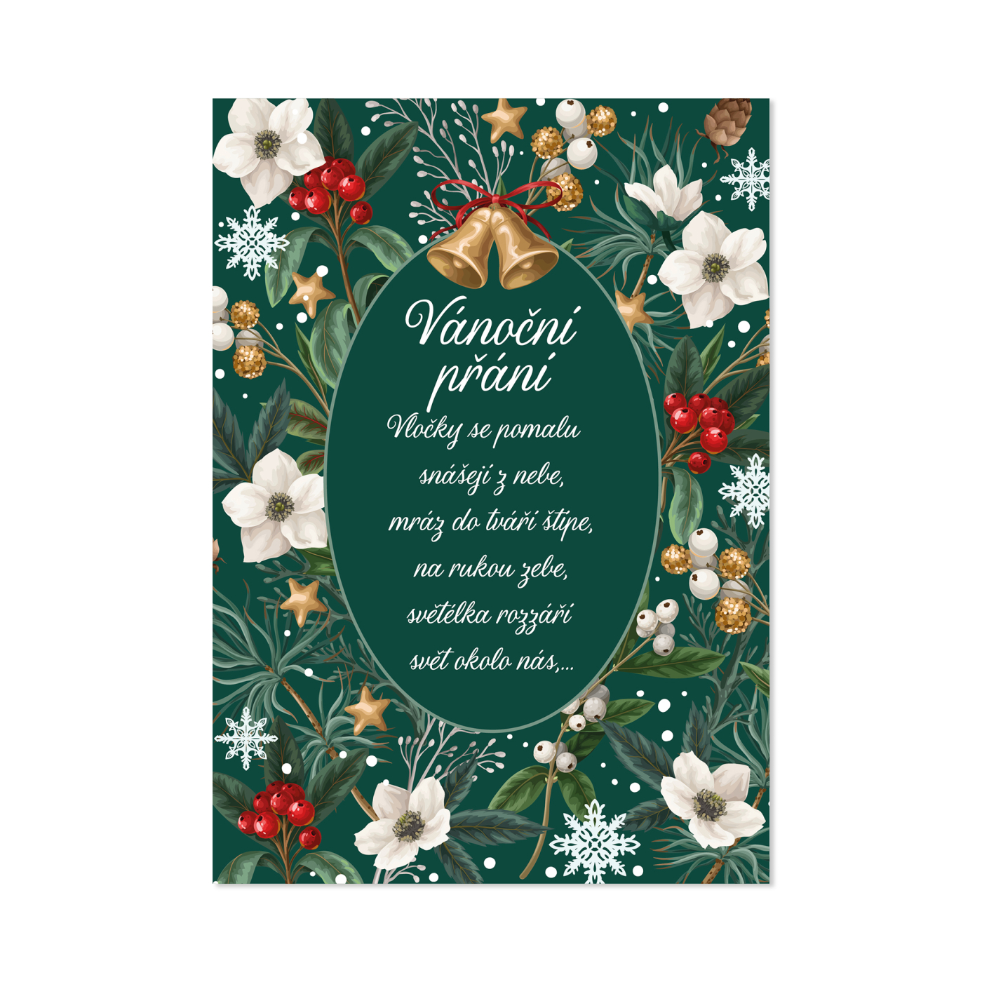 Po otevření přání začne hrát píseň od kapely Kryštof a Karla Gotta - Vánoční. Na přední straně i uvnitř přání pak najdete milé veršované věnování. Text přání: Vánoční přání Vločky se pomalu snášejí z nebe, mráz do tváří štípe, na rukou zebe, světélka rozzáří svět okolo nás,... ... po roce přichází ten kouzelný čas. Krásné Vánoce a bohatou nadílku přeje... Rozměry: 14,8 × 21 cm