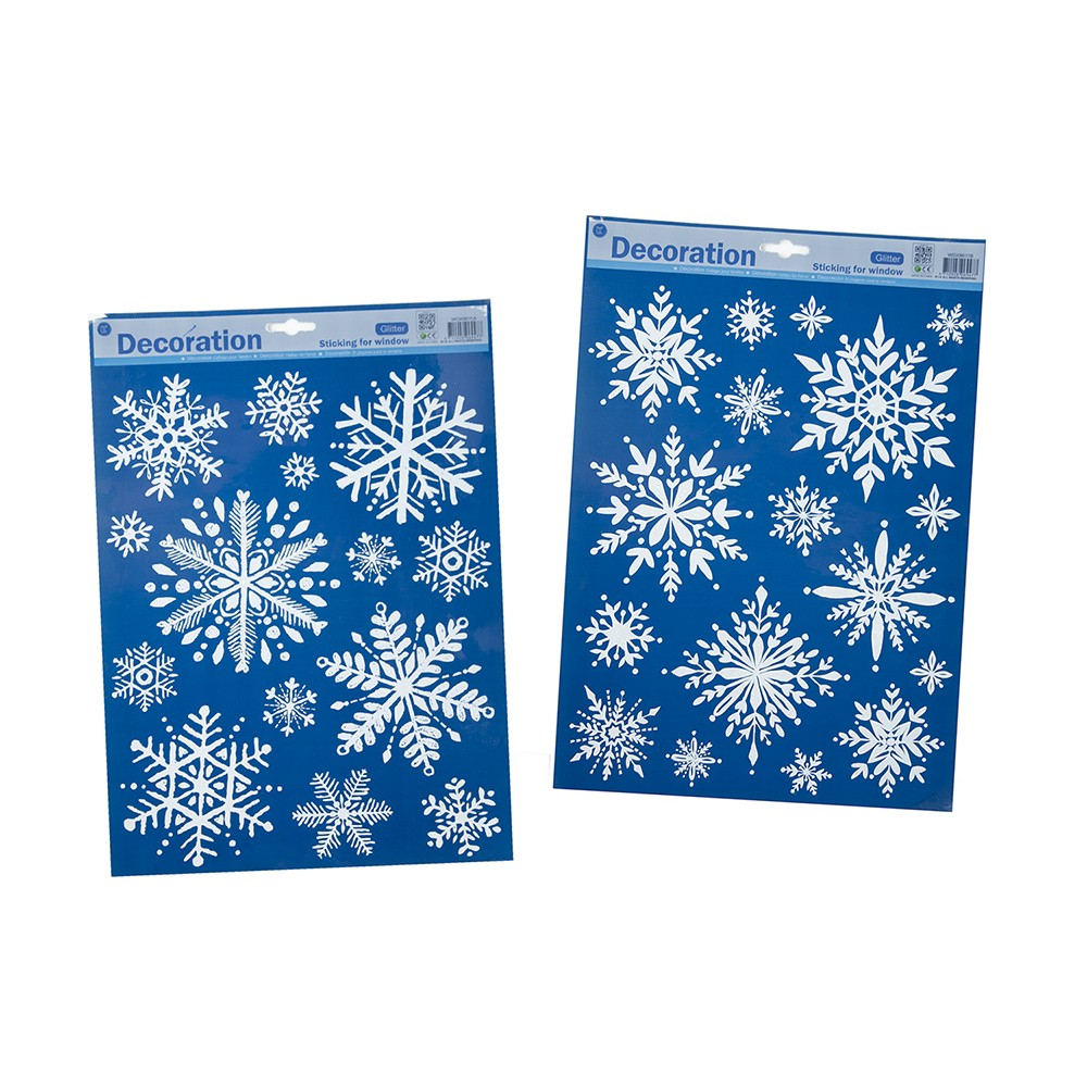 Vánoční vločky samolepící na okno se třpytkami – dva druhy.