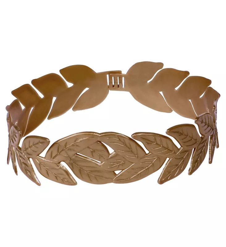 Věnec, vavřínový zlatý, pás, šířka 4,5 cm, délka 50 cm, spojení gumičkou. Materiál: plast