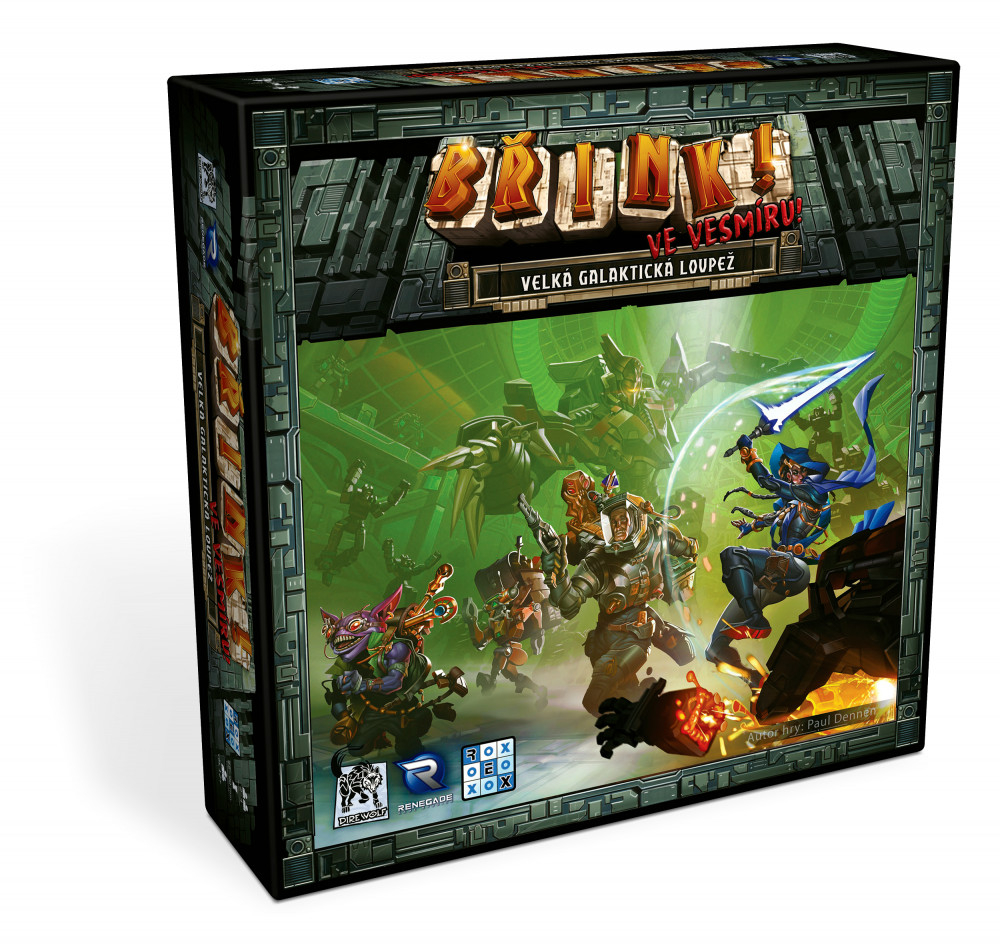 <p>Břink ve vesmíru je sci-fi varianta hry populární deckbuildingové hry Břink!. Jako galaktiční lupiči se budete snažit ukořistit ty nejcennější artefakty z vesmírné lodi tyrana REXe a nenechat se při tom chytit. K tomu budete muset do svého balíčku karet sbírat karty zajišťující vám pohyb po lodi či karty pro boj s nepřáteli, na které narazíte. Břink ve vesmíru! se od standardního Břinku! liší v tom, že má trochu složitější mechanismy. Uspokojí tak i náročnější hráče. Nadto hra obsahuje spoustu popkulturních odkazů na různá sci-fi díla, takže pokud máte sci-fi rádi, je Břink ve vesmíru! pro vás ta správná volba. Počet hráčů: 2-4 Minimální věk: 12+ Délka hry: 60 min</p>