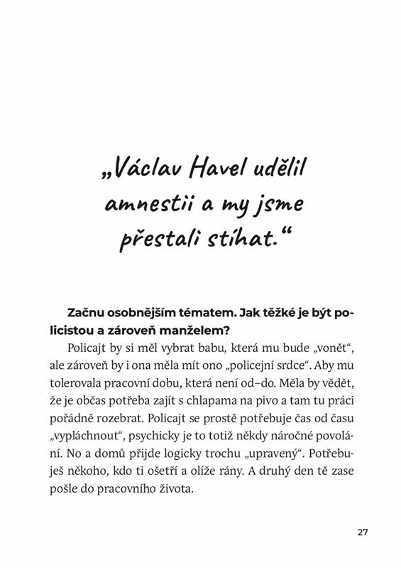 Co všechno musí umět a znát člověk, který velí policejnímu útvaru určenému k zásahu proti agresivním, nebezpečným nebo ozbrojeným pachatelům? Jaroslav Černý strávil ve službě 42 let, mimo jiné právě jako velitel Zásahové jednotky Krajského ředitelství policie hlavního města Prahy. Syrový rozhovor, který s ním vedl renomovaný moderátor, publicista a spisovatel Miroslav Vaňura, je unikátním nahlédnutím do světa skutečného zločinu. Do světa, kde jde o vteřiny a kde na obou stranách barikády občas umírají lidé.