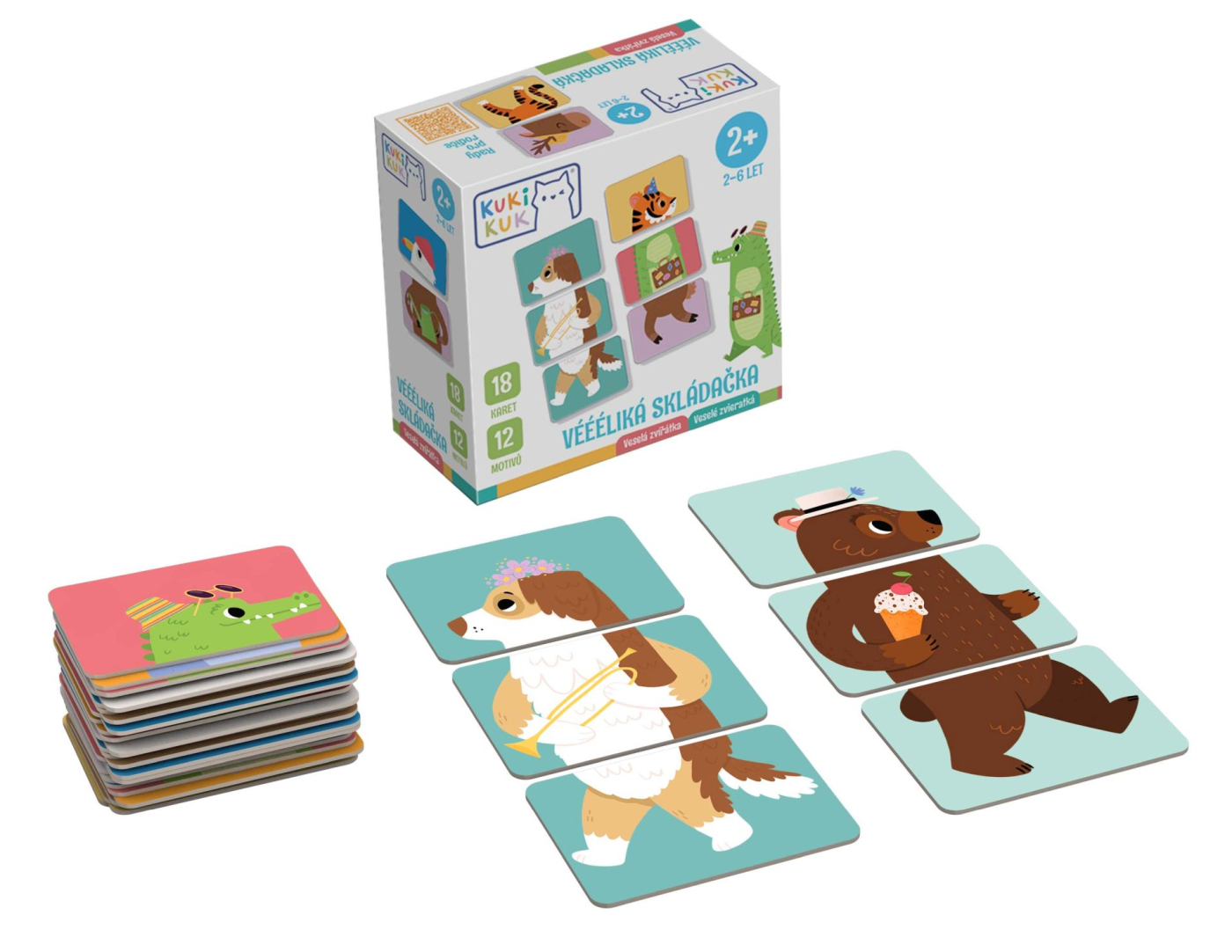 <p></p><p>Kreativní hra Véééliká skládačka Veselá zvířátka je určena ke vzdělávání nejen pro batolata, ale také pro předškoláky. Zvířátka se skládají ze tří kartiček: hlava – trup – nohy. Sada obsahuje 18 oboustranných karet, které zobrazují celkem 12 různých zvířátek, ze kterých je možno také vytvořit nepřeberné množství legračních kombinací.<br /><br /> Sada obsahuje tipy na různé herní varianty.</p><br /> <br /> <p>1. Po sestavení obrázků plňte následující úkoly: pojmenujte zvířátka. Vydávají tato zvířátka nějaké zvuky? Napodobujte je! Vytvořte charakteristický zvuk pro každé zvířátko nebo si vytvářejte zvuky podle vlastní fantazie. Zapojte celé tělo, napodobujte pohyby zvířat.</p><br /> <br /> <p>2. Umíte pojmenovat předměty, které zvířátka drží? K čemu tyto předměty slouží, co je možné s nimi dělat? Co mají zvířátka na hlavě?</p><br /> <br /> <p>3. Názvy zvířat vytleskávejte: pes – jedno tlesknutí. Koč-ka, ty-gr – dvě tlesknutí. O-pi-ce, kro-ko-dýl – tři tlesknutí.</p><br /> <br /> <p>4. Vysvětlete dětem, jaká je zábava skládat vlastní kombinace kartiček a vytvářet nová „veselá“ zvířátka! Soutěžte, kdo sestaví nejzábavnějšího tvora.</p><br /> <br /> <p>5. Vezměte si papír a pastelky: prohlédněte si pozorně obrázky zvířátek a zkuste si je nakreslit. Vytvořte si vlastní sady veselých zvířátek.</p><br /> <br /> <p>Doporučený věk 2-6 let. Vyrobeno v ČR.</p><br />