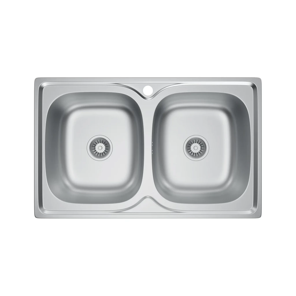 Typ: Dvoukomorový Způsob montáže: Zapuštěná Povrchová úprava: Microdecor – moderní, dekorativní povrch Materiál: Nerezová ocel Rozměry: Délka: 80 cm Šířka: 50 cm Hloubka: 2 x 16 cm (pro každou přihrádku) Tloušťka kovu: 0,6 mm Otvor pro baterii: 35 mm