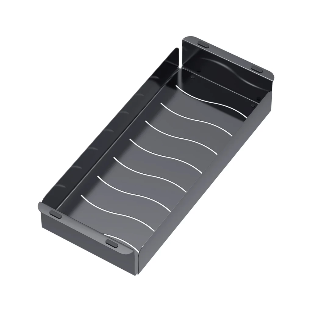 Funkční a elegantní grafitový košík do dřezu. Vyrobeno z nerezové oceli, perfektně se hodí k žulovým a ocelovým dřezům. Vlastnosti produktu: – Materiál: nerezová ocel– Barva: Grafitová, kartáčovaný saténový povrch– Rozměry: 440x185mm (vnitřní délka 395mm) výška 67mm– Protiskluzové nožičky: Ochrana proti poškrábání– Všestrannost: Hodí se do různých dřezů– Moderní design– Snadno se udržuje v čistotě Kompatibilita: Koš se perfektně hodí k dřezům Melanstar s rozměry: 44×44 cm74×44 cm54×44 cm50×50 cm60×50 cm37×45 cm40×50 cm80×45 cm47×45 cm49×44 cm48×45 cm78×49 cm Grafitový košík pod dřez – funkční a elegantní doplněk do kuchyně.