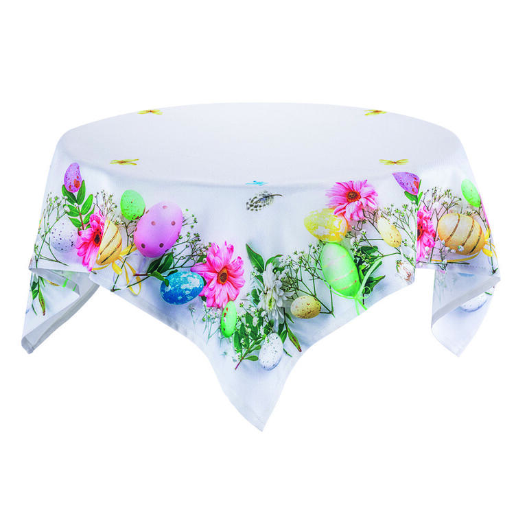 Středový ubrus s tradičním motivem kraslic rozzáří váš stůl během velikonočních svátků. Dobře se udržuje, rychle schne, téměř se nemačká a je stálobarevný. Doporučujeme prát na 40 °C.
