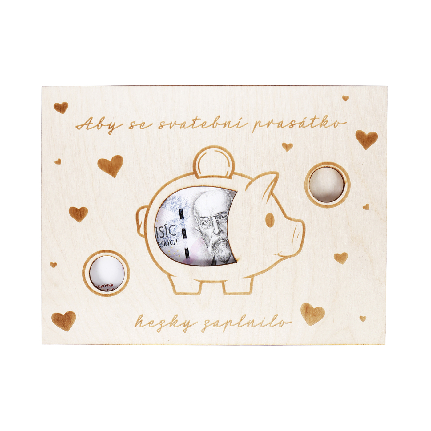 Darujte novomanželům peníze v dárkové dřevěné kapse v tématickém tvaru.