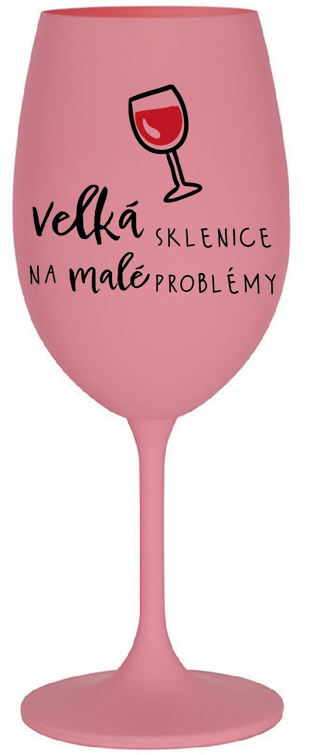 Vinná růžová sklenice s originálním motivem VELKÁ SKLENICE NA MALÉ PROBLÉMY je krásným a osobitým dárkem, které ale využijete i Vy sami třeba ve chvílích, kdy si budete chtít zpříjemnit náročný den. Tyto originální vinné sklenice jsou totiž nejen pro výjimečné události, ale i pro běžné večery, které si chcete zpříjemnit sklenkou dobrého vína. Jistě proto potěší každého milovníka vína, i toho, kdo si umí svůj život vychutnat plnými doušky. Materiál sklo. Vyrobené s láskou v ČR