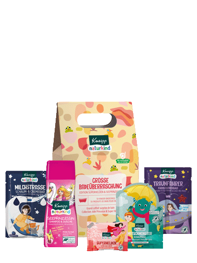 Kneipp® dětská dárková sada Velké koupací překvapení pro holky představuje skvělou kombinaci přírodní péče a zábavy pro děti i rodiče. Veganské oleje ve výrobcích zajišťují dokonalou hydrataci. Šampon a sprchový gel Mořská princezna vás navíc okouzlí sladkou malinovou vůní, koupelové soli a pěny zase vodu vesele obarví. Kromě toho každou malou slečnu potěší i originální krabička. Skrývá totiž ještě jedno překvapení – krásné omalovánky na vnitřní straně. Produkty Kneipp® Naturkind jsme s láskou vyvinuli speciálně pro děti od 3 let.