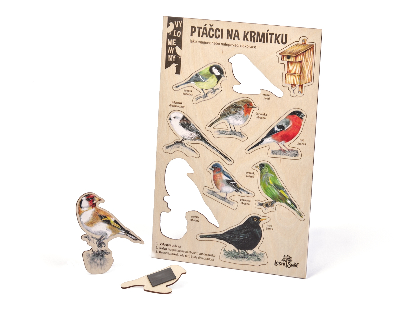 Vylomeniny vyrábí u nás v dílně české ruce z kvalitního certifikovaného dřeva. Balení obsahuje 1 sadu vylomenin (8 kusů), magnetickou pásku k nalepení a oboustrannou lepící pásku. Celková velikost je A4. Baleno v sáčku. Autorem kreseb jsou čeští ilustrátoři, obrázky jsou chráněny autorskými právy. Zábavnou a hravou formou seznamuje děti i dospělé s přírodou. Vyloupni zvířátko, nalep magnetku nebo oboustrannou lepící pásku a umísti kamkoliv, kde ti to bude dělat radost. Lesní svět = značka s ekologickým certifikátem udržitelného hospodářství PEFC. Všechny výrobky jsou vyrobeny s ohledem na životní prostředí.