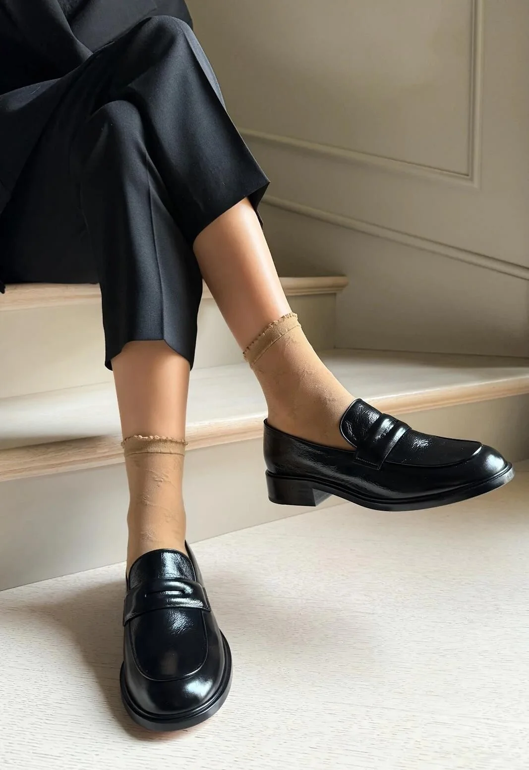 Tenké vzorované dámské ponožky - ozdobný lem - univerzální velikost Složení: 90 % polyamid, 10 % elastan
