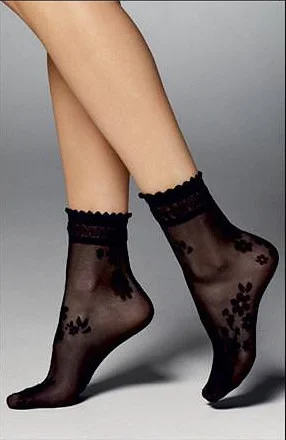 Tenké dámské ponožky - zdobené květinovým potiskem - ozdobný lem - univerzální velikost Složení: 90 % polyamid, 10 % elastan