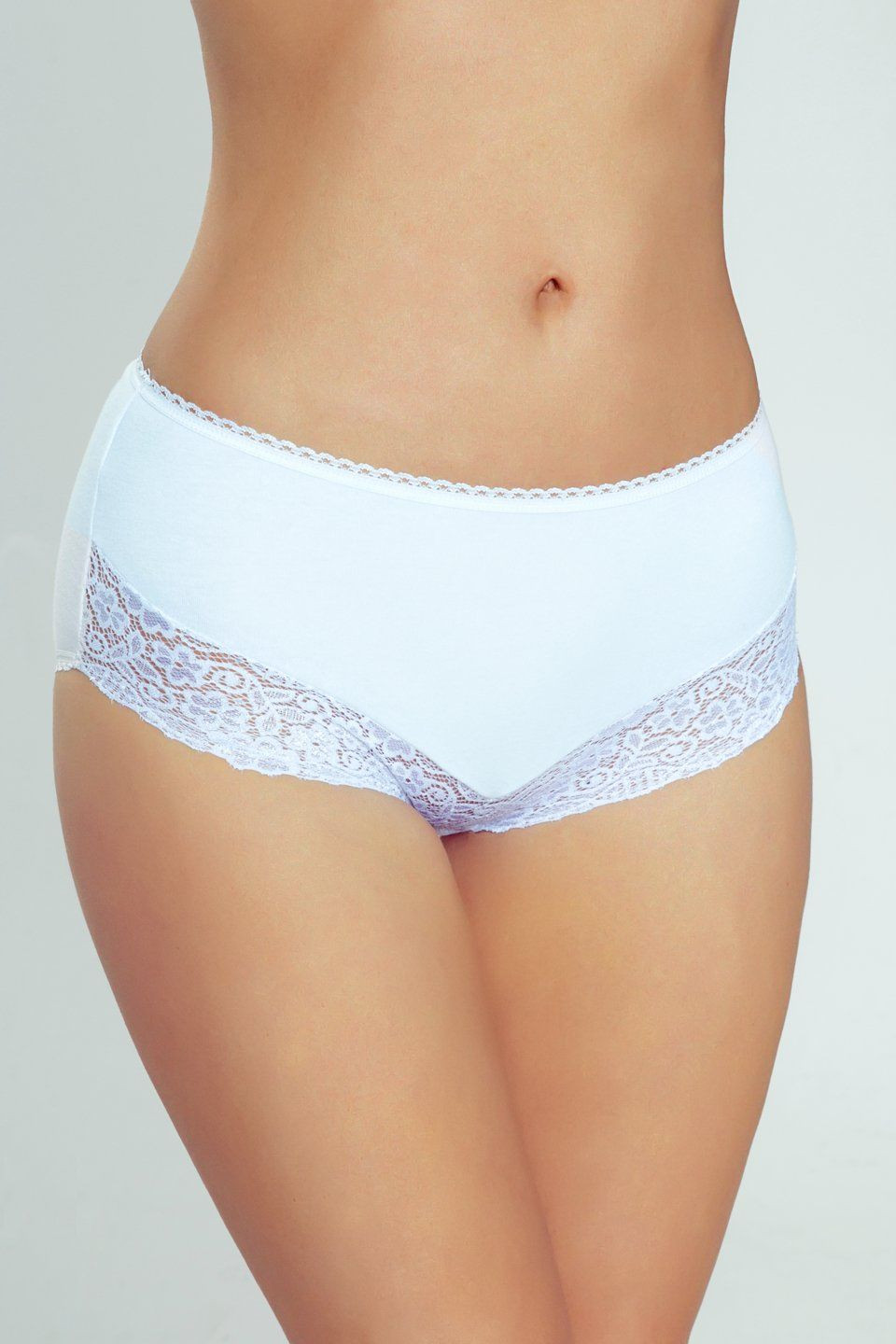 VelikostSMLXLXXL Obvod boků91-95 cm96-100 cm101-105 cm106-110 cm111-115 cm Elegantní kalhotky zakončené krásnou ažurovou krajkou na stehnech, mírně rozšířené boky, midi střih, 80 % bavlna, 17 % polyamid, 3 % elastan.