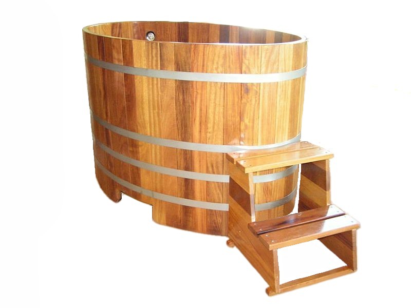 Koupel v dřevěném sudu je krásným zážitkem! Koupací káď KAMBALA s rozměry 130 x 79 cm je vybavena na vnější straně nerezovými okraji.
