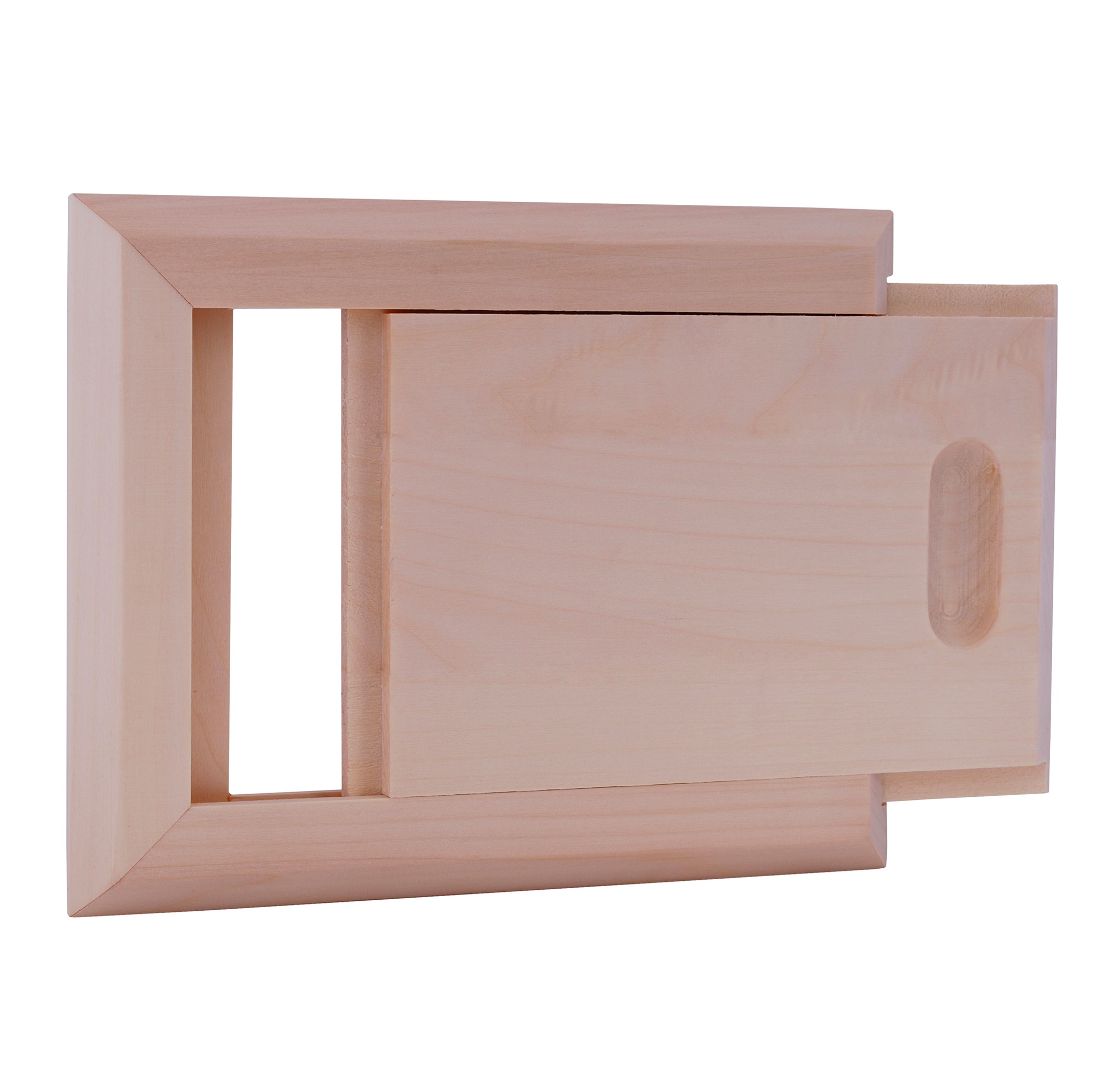 Ventilační zásuvka s posuvnou krytkou. Šuplík je vyhotovený speciálně pro použití v sauně nebo infrasauně. Rozměry: 215x170mm. Kvalitní zpracování, materiál borovicové dřevo.