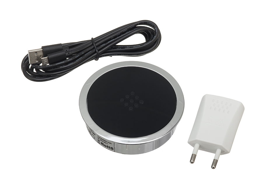 Bezdrátová nabíječka VersaCharger- bezdrátová nabíječka s technologií QI- mobilní telefon musí být vybaven možností indukčního nabíjení- není potřeba žádných nabíjecích kabelů- jedinečná kombinace designu a moderních technologií- stačí položit telefon na nabíječku a nabíjení ihned začne- začátek nabíjení je signlizován zvukovým signálem a stav nabíjení modrou LED diodouDalší vlastnosti:– jednoduchá instalace - montážní otvor ? 80 mm– protiskluzové provedení