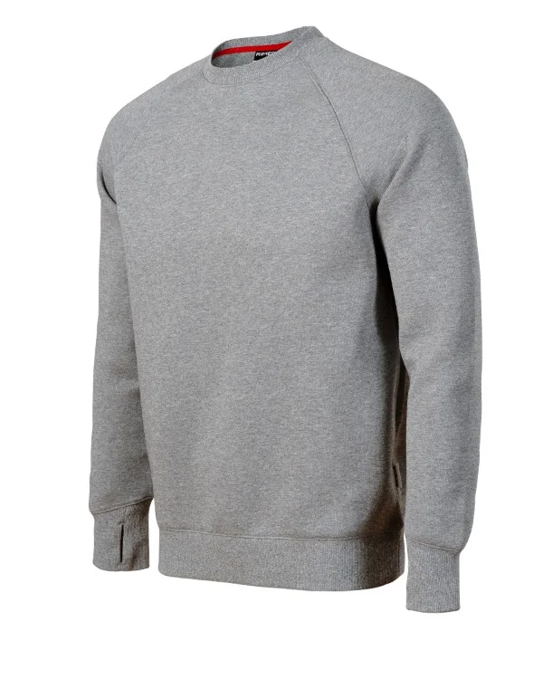 rovný střih s bočními švy vnitřní část průkrčníku začištěna kontrastní páskou raglánové rukávy s dvojitým prošitím dolní lem, manžety a průkrčník z žebrového úpletu 2:2 s 5 % elastanu manžety s otvorem pro palec kontrastní prvky