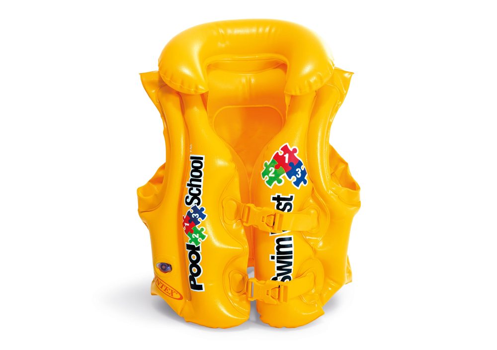 Žlutá nafukovací vesta usnadní výuku plavání dětem. Dodatečnou bezpečnost zajišťují 3 vzduchové komory včetně nafukovacího límce a materiál o tloušťce 0,25 mm. Velikost 50 x 47 cm. Nosnost 18 - 30 Kg Vestu můžete k tělu přitáhnout pomocí dvou nastavitelných rychloupínacích spon. Doporučený věk: od 3 let