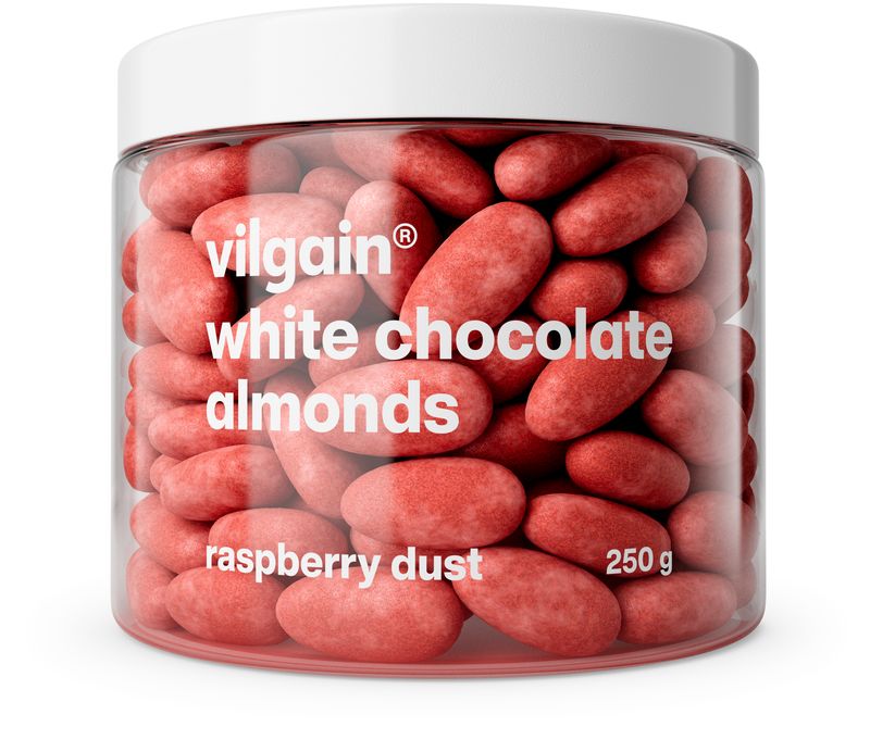 Vilgain Mandle v čokoládě – bílá čokoláda v malinovém prášku 250 g
