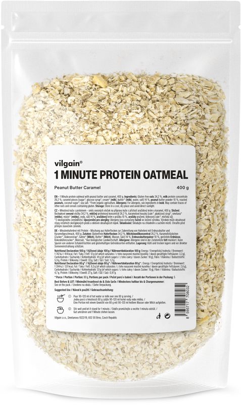 Vilgain Minutová proteinová ovesná kaše – 3× arašídové máslo s karamelem 400 g