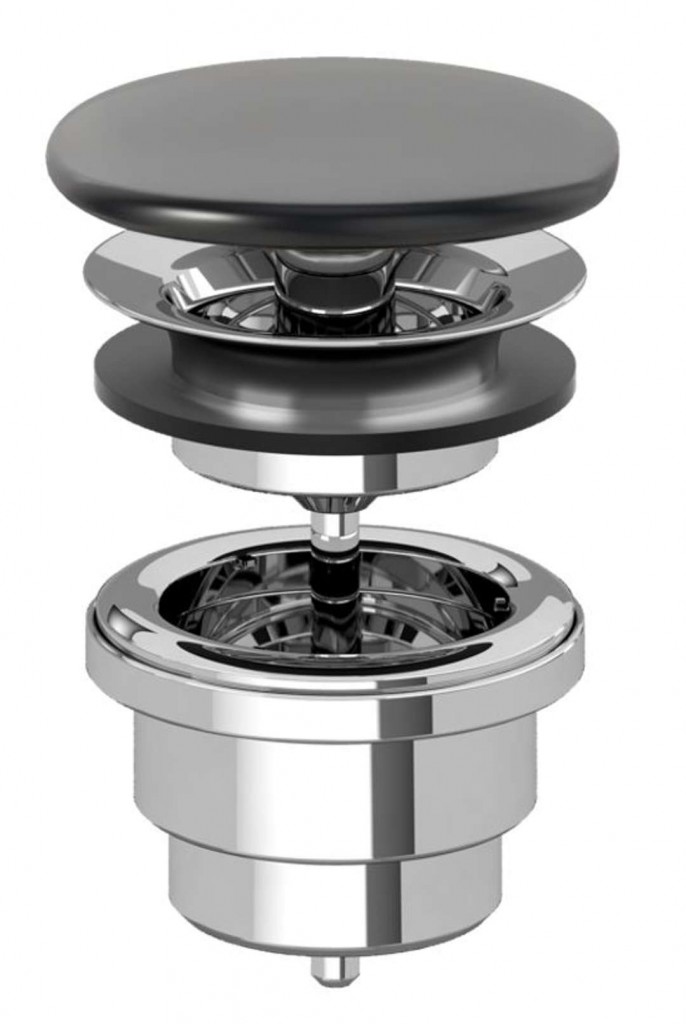 Neuzavíratelná výpusť pro umyvadla barva: černá (Pure Black) materiál krytky: sanitární keramika s povrchovou úpravou CeramicPlus materiál těla: mosaz celkový rozměr: 75 x 75 x 110 mm průměr ventilu: 32 mm