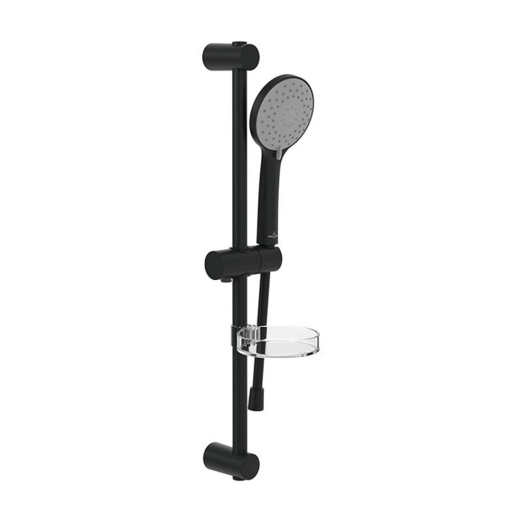 Sprchová souprava obsahuje ruční sprchu barva matná černá průměr 110 mm s přepínačem 3 sprchové proudy - relaxační, masážní, intenzivní s integrovanou zpětnou klapkou EasyClean speciální povrchová úprava, která brání usazování vodního kamene sprchovou hadici délka 1600 mm sprchovou tyč rozteč uchycení 520 mm s výškově nastavitelným držákem ruční sprchy s poličkou - mýdelníkem