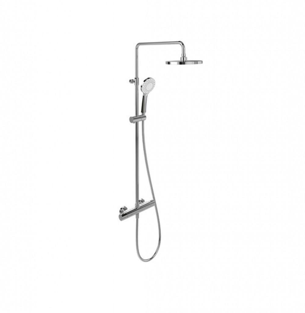 Sprchový systém s termostatickou baterií obsahuje sprchovou termostatickou baterii barva chrom kohoutkové ovládání nástěnná montáž termostatická kartuše rozteč 150 mm, S-přípojky EasyClean speciální povrchová úprava, která brání usazování vodního kamene hlavovou sprchu barva chrom 1 proud kulatý tvar průměr 230 mm ruční sprchu průměr 110 mm 3 proudy - relaxační, masážní, intenzivní s integrovanou zpětnou klapkou sprchovou hadici délka 1600 mm připojení G 1/2" sprchovou tyč s nastavitelným držákem ruční sprchy