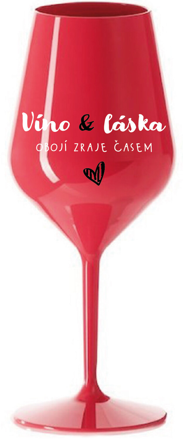 Nerozbitná červená vinná sklenice s motivem VÍNO A LÁSKA: OBOJÍ ZRAJE ČASEM je skvělá na zahradu, pláž, výlet, piknik a parádu udělá i při kempování. Jelikož je vyrobená z kvalitního polykarbonátu je de facto nerozbitná. Je to luxusní kousek, s nímž si víno můžete vychutnat prostě kdekoliv. Mají ergonomický tvar, který příjemně padne do ruky a protože je lehká, usnadňuje to její přenášení. Je snadno skladovatelná a lehce se čistí. Díky svému designu si s ní můžete vychutnat doopravdy kdekoliv bezproblémové pití výborného vína. Materiál PP. Vyrobené s láskou v ČR