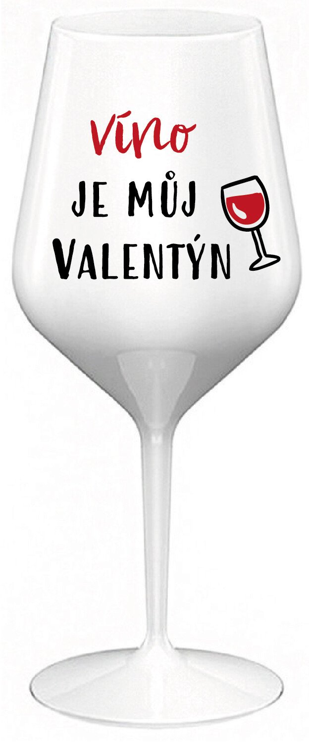 Nerozbitná bílá vinná sklenice s motivem VÍNO JE MŮJ VALENTÝN je skvělá na zahradu, pláž, výlet, piknik a parádu udělá i při kempování. Jelikož je vyrobená z kvalitního polykarbonátu je de facto nerozbitná. Je to luxusní kousek, s nímž si víno můžete vychutnat prostě kdekoliv. Mají ergonomický tvar, který příjemně padne do ruky a protože je lehká, usnadňuje to její přenášení. Je snadno skladovatelná a lehce se čistí. Díky svému designu si s ní můžete vychutnat doopravdy kdekoliv bezproblémové pití výborného vína. Materiál PP. Vyrobené s láskou v ČR