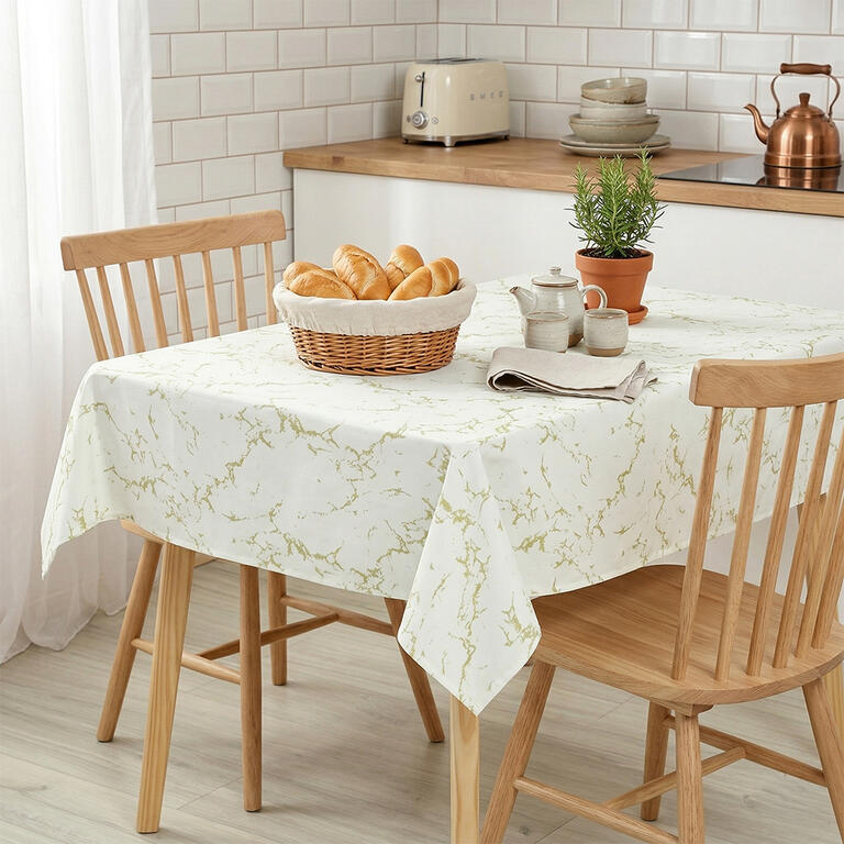 Prémiový vinylový ubrus bude skvělým pomocníkem pro vaše bezstarostné letní stolování. Motiv zlatého mramoru přinese do vaší domácnosti uvolněnou atmosféru krásy a radosti, která s vámi zůstane klidně po celý rok. Perfektně se hodí na rodinné obědy, letní večírky nebo jako krásný doplněk pro vaše posezení na zahradě či na terase.