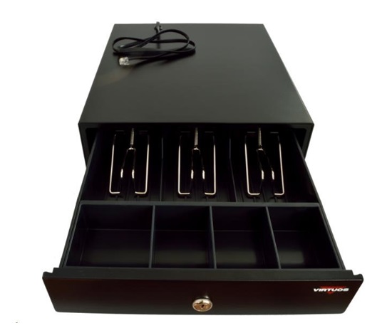 Virtuos pokladní zásuvka C425D-Luxe - kulič. pojezdy, kabel, 9-24V, černá